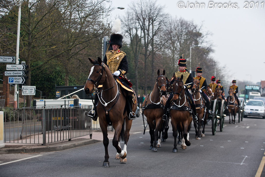 ROYAL ARTILLERY GOLD CUP DAY – Friday 18 February 2011. Esher High Street hosted a Welcome Home Parade at 10:30am. Those regiments that took part in the march included The Kings Troop Royal Horse Artillery, The Royal Artillery Band, Marching troops from various Royal Artillery Regiments and the Royal Artillery Pipes & Drums.