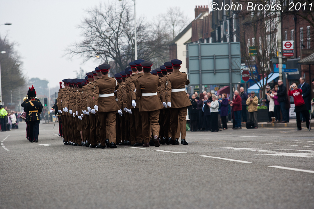 ROYAL ARTILLERY GOLD CUP DAY – Friday 18 February 2011. Esher High Street hosted a Welcome Home Parade at 10:30am. Those regiments that took part in the march included The Kings Troop Royal Horse Artillery, The Royal Artillery Band, Marching troops from various Royal Artillery Regiments and the Royal Artillery Pipes & Drums.